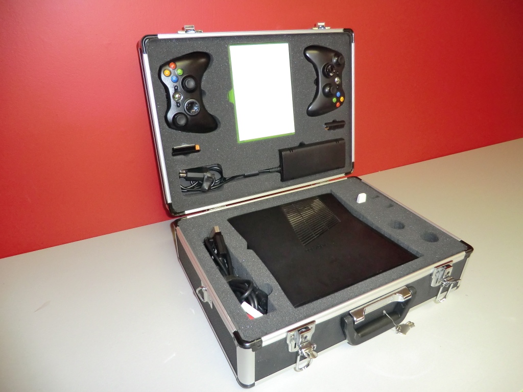 The rugged yet lightweight, aluminum trimmed case is fitted with custom designed foam pockets. These foam pockets securely hold all the components that come with your xBox 360 slim and protect them from damage.